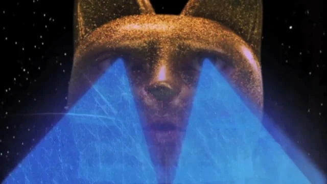Giant Interactive Cat that projects art through its laser beam eyes.